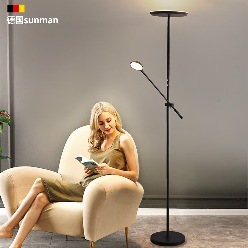 sunman德国卧室护眼落地灯子母双头立式led台地灯客厅床头现代简约灯具 180cm无极调光52W